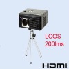 Brightness 200ANSIlms Resolution 1024x768support1920x1080 ContrastRatio 800:1 AspectRatio 4:3,16:9 DisplaySystem 0.45”CS-LCOS LightLamp R,G,BLED Gamut 120%NTSC PowerPlug DC12V-5A Power 38W Offset Support100% ProjectDistance 0.4-6.6m ProjectSize 7"-150" VGAInputs Mini-VGA,HDMI,AV,SD,USB,DV12V,MP4 AVInput 3.5mm HDMIInput StandardHDMI AudioInput 3.5mm Speaker 2W Size 132(L)x115(W)x52(H)
